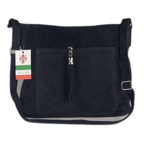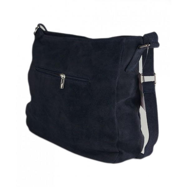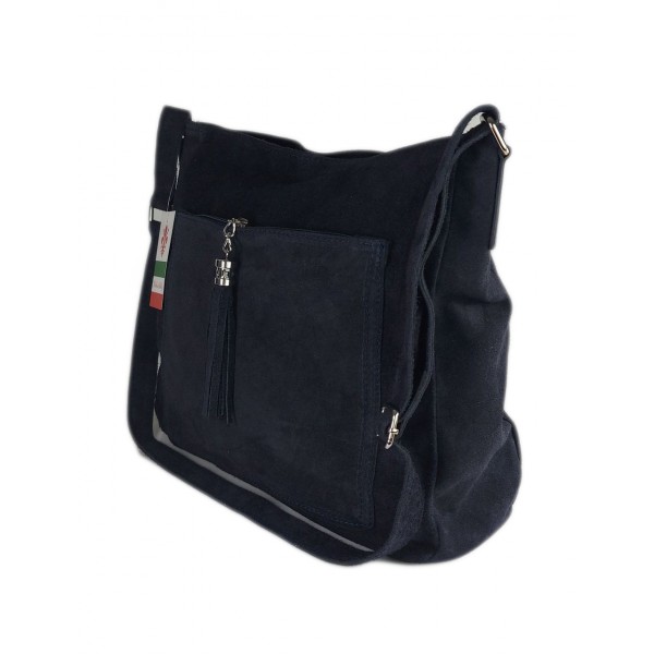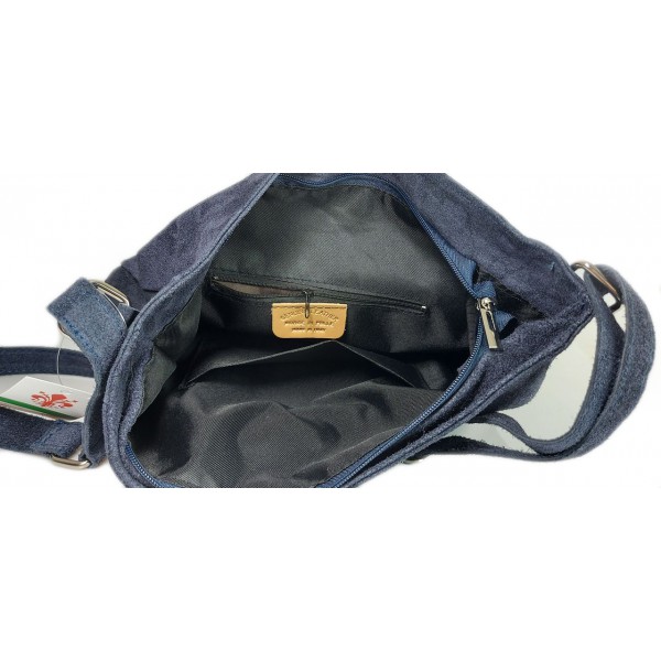 Duża włoska listonoszka A4 , worek na ramię ,zamsz naturalny ,Granatowa WAF567BS