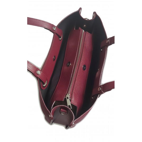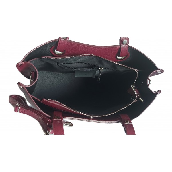 Duża Włoska skórzana torba Shopper bag trzy komory na ramię mieści A4 ,Vera Pelle Bordo VOM65RR