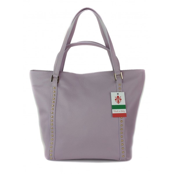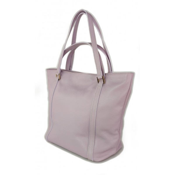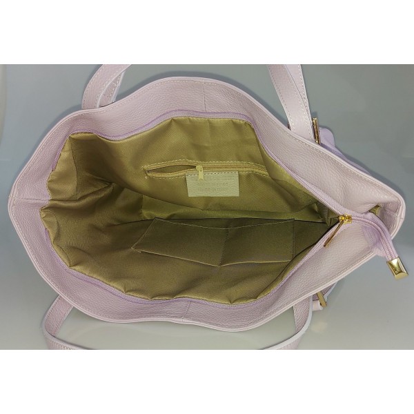 Duża włoska torba na ramię,podwójne uszy, worek Vera Pelle ,Liliowa WM555WR