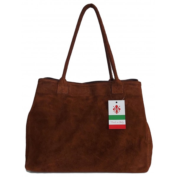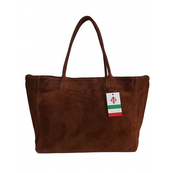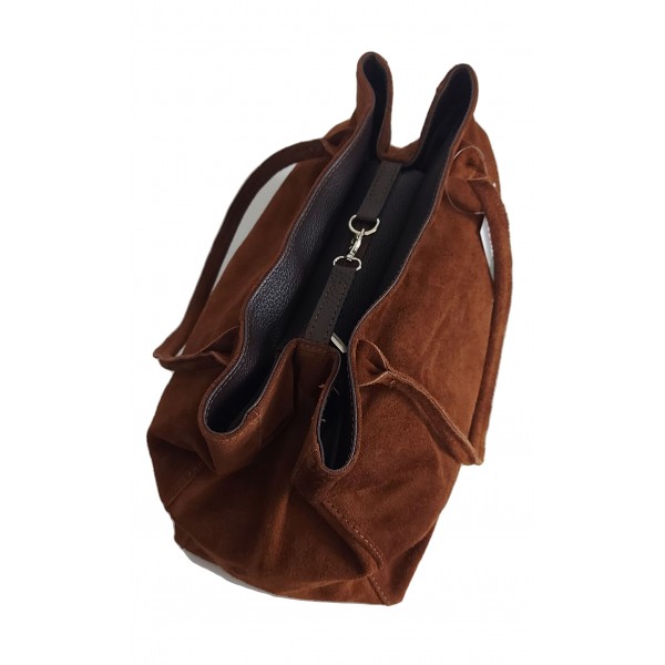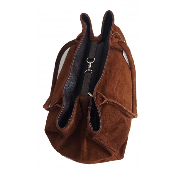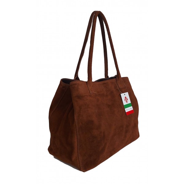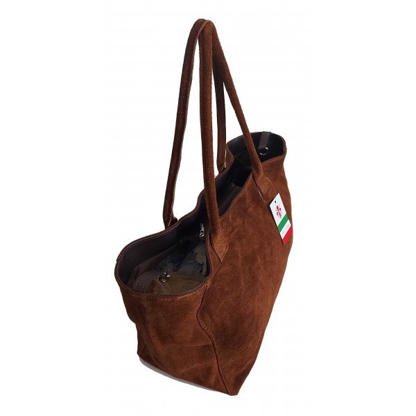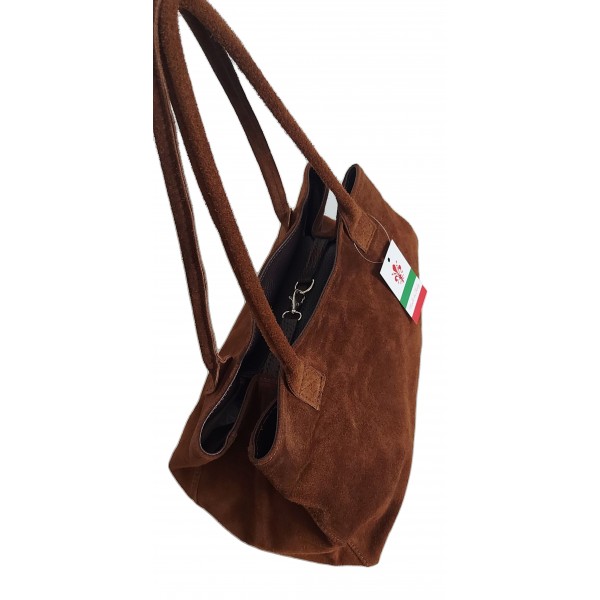 Duża włoska torba XL- A4 , worek na ramię , zamsz naturalny Vera Pelle ,Brązowa WGXL5M