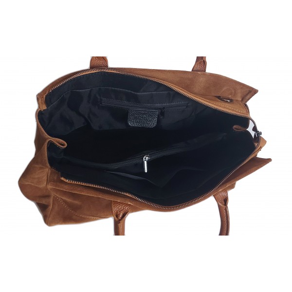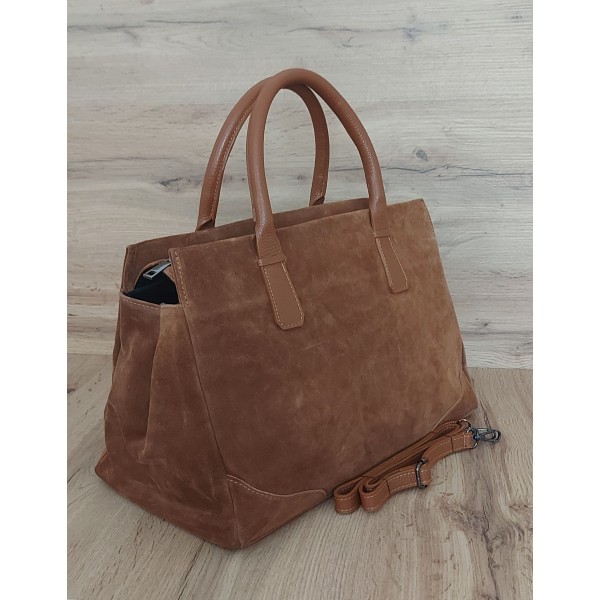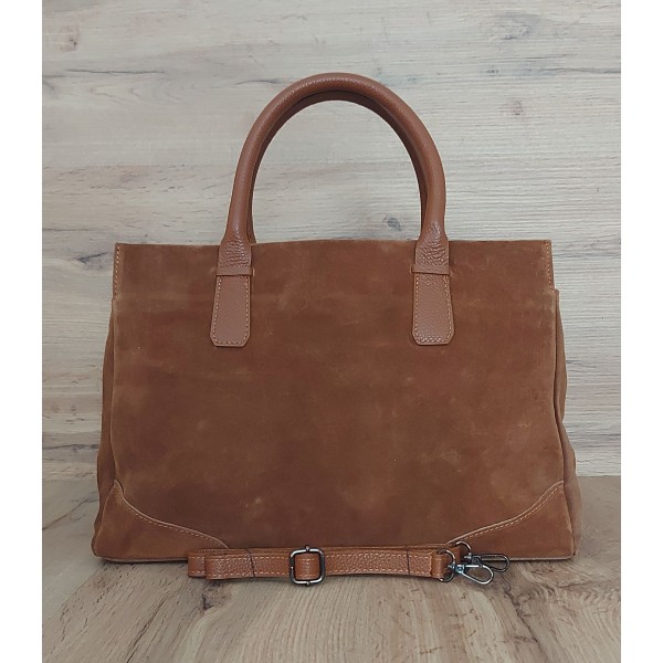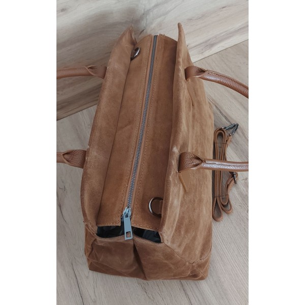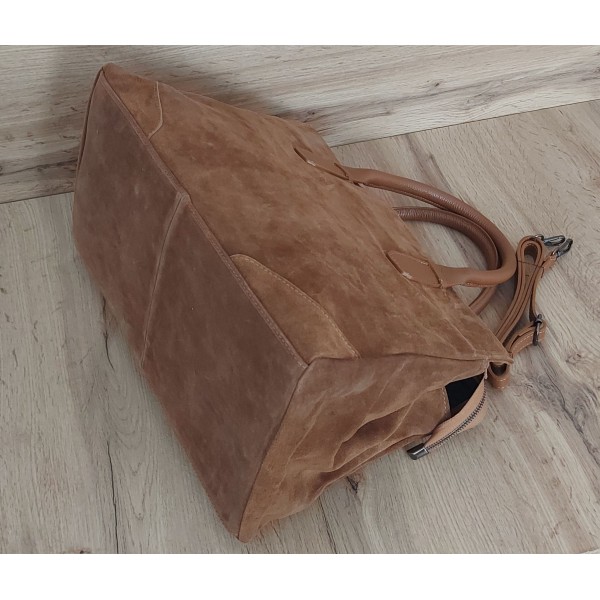 Duża Włoska torba XXL Vera Pelle, skórzany zamszowy kufer pojemny A4 Camel WKXL85C