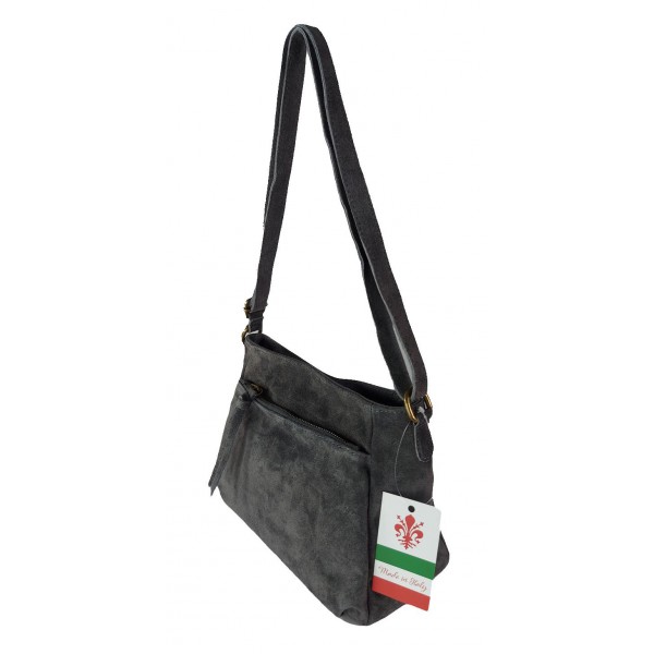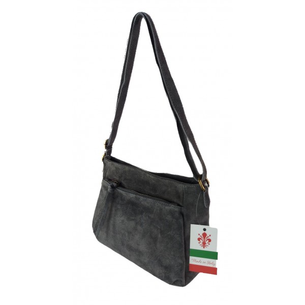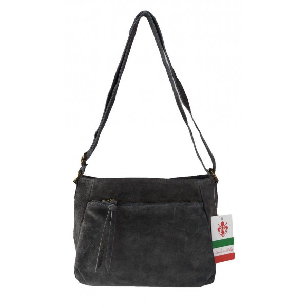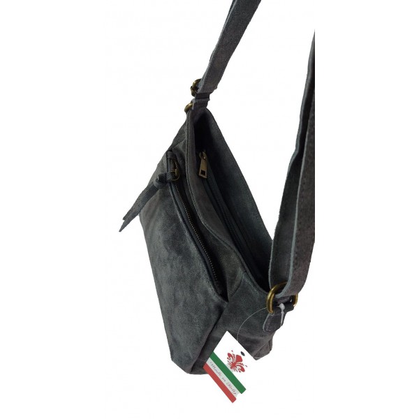 Oryginalna włoska torebka listonoszka wykonana ze skórki naturalnej zamszowej
