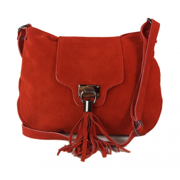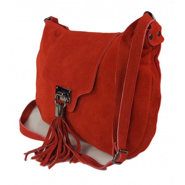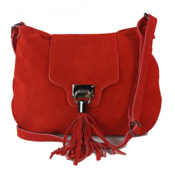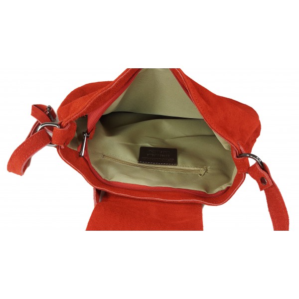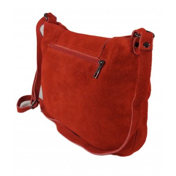 Duża zamszowa listonoszka ,chlebak Vera Pelle ,pojemna przewieszka A5 Czerwona VPZ55R