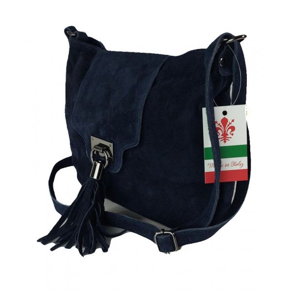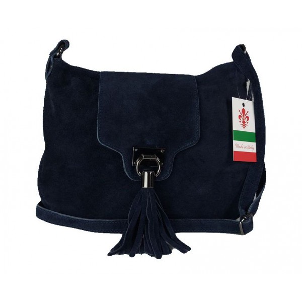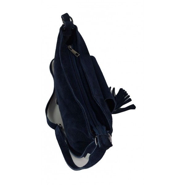 Duża zamszowa listonoszka ,chlebak Vera Pelle ,pojemna przewieszka A5 Granatowaa VPZ55BS