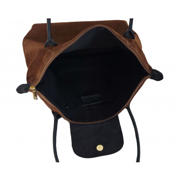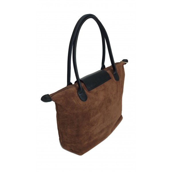 Wykonana ze skórki naturalnej zamszowej najwyższej jakości plus klapeczka i rączki ze skórki bydlęcej „DOLLARO”.