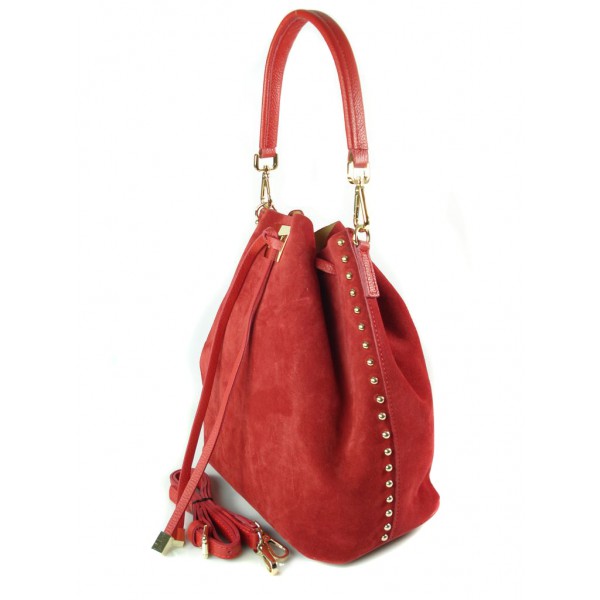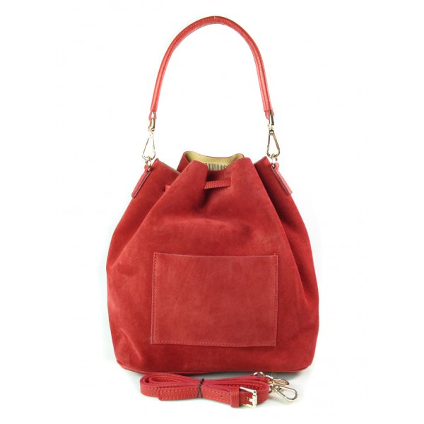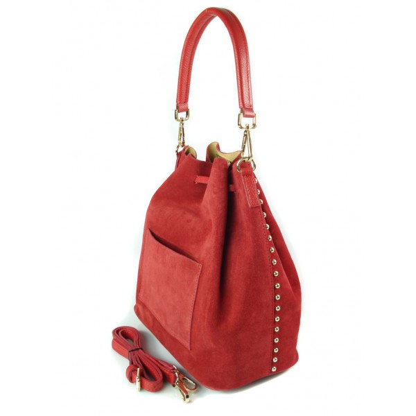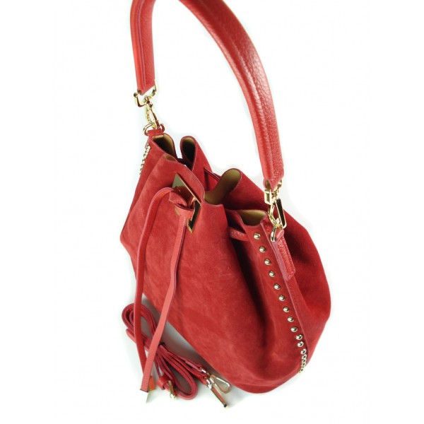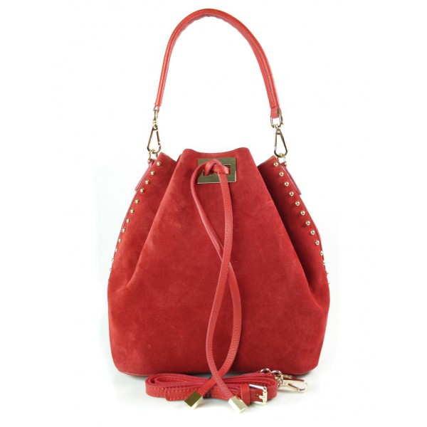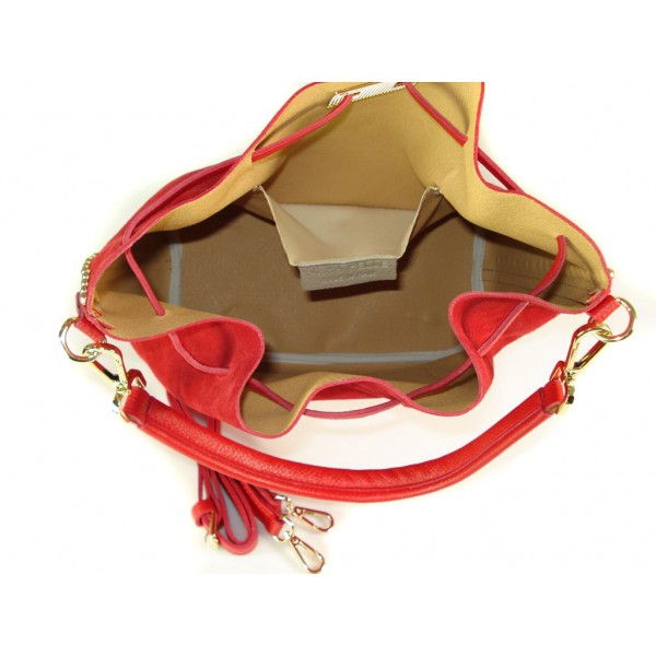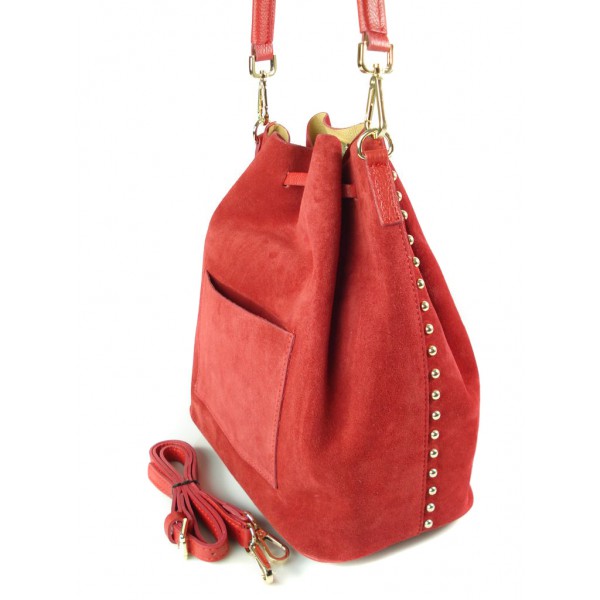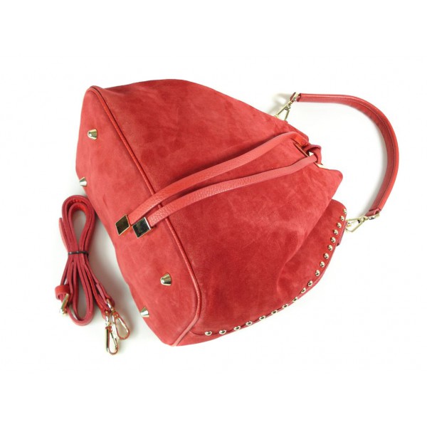 Duży zamszowy skórzany worek na ramię złote okucia dzety czerwony MK46R