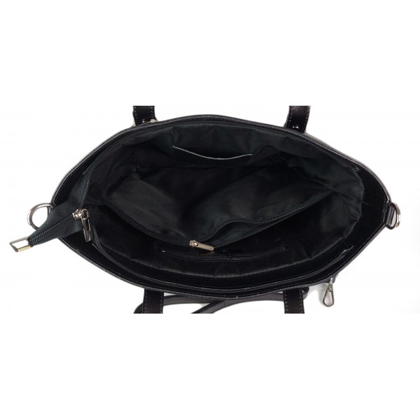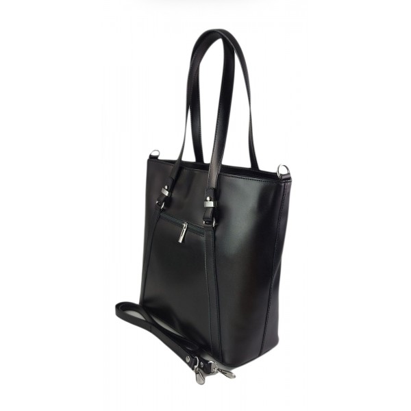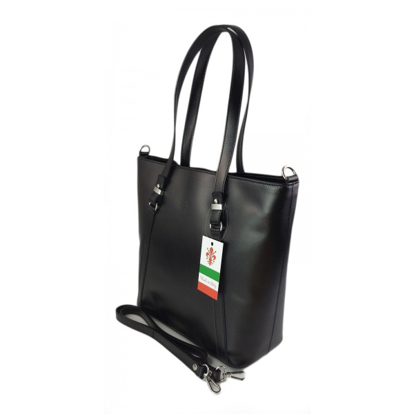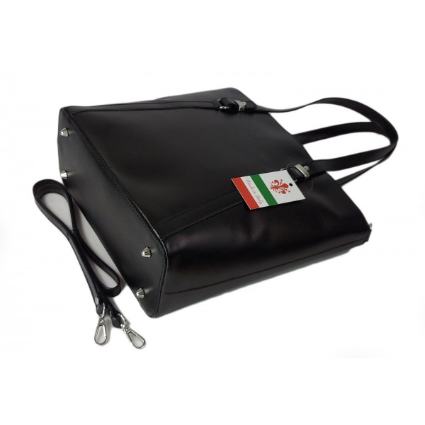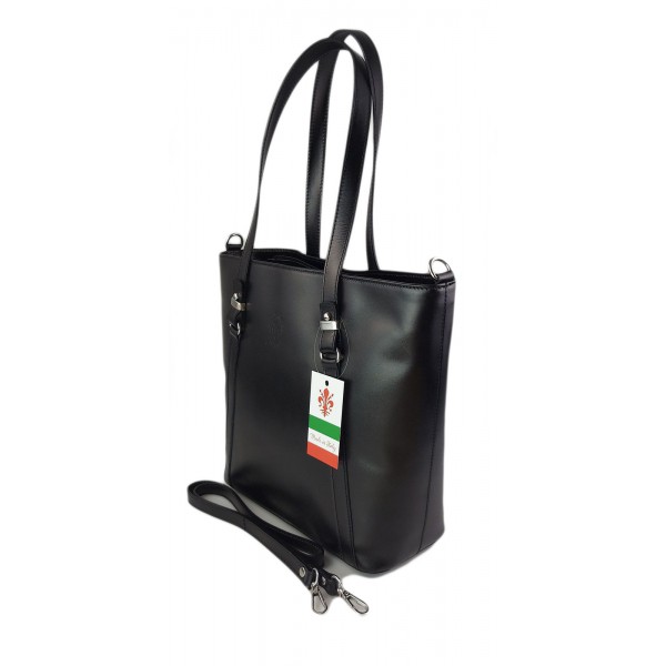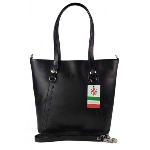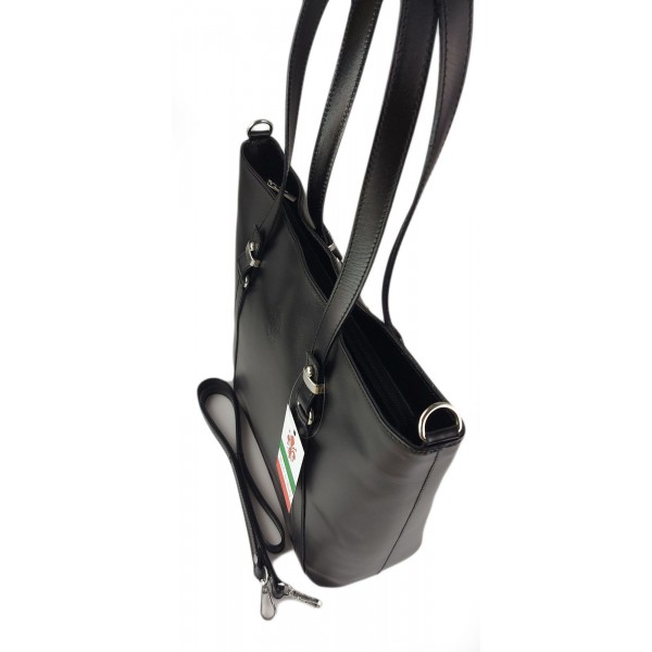 Klasyczna Włoska torebka skórzana na ramię mieści A4 ,Vera Pelle , Czarna MVN14N