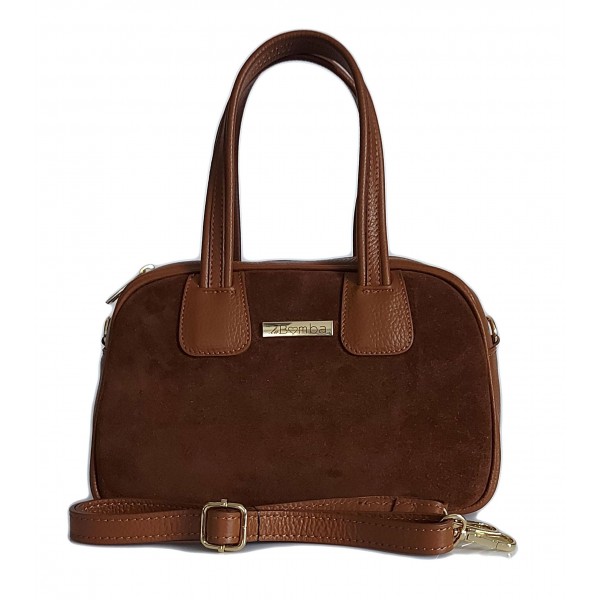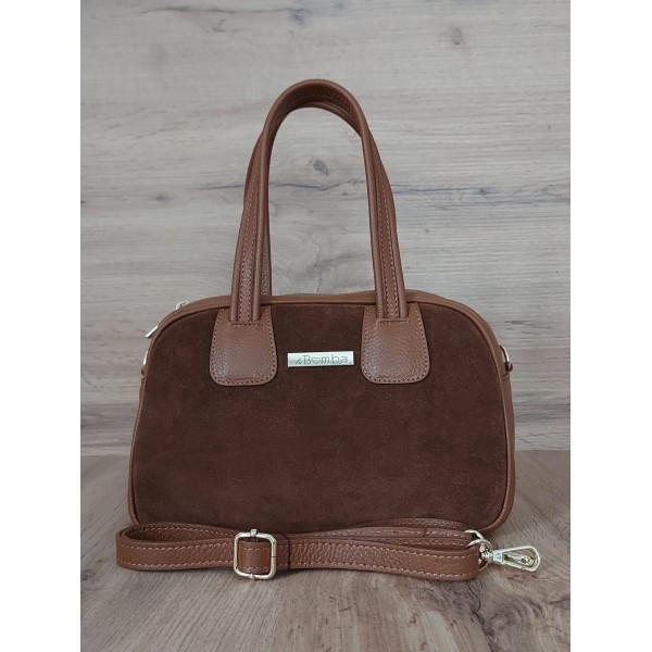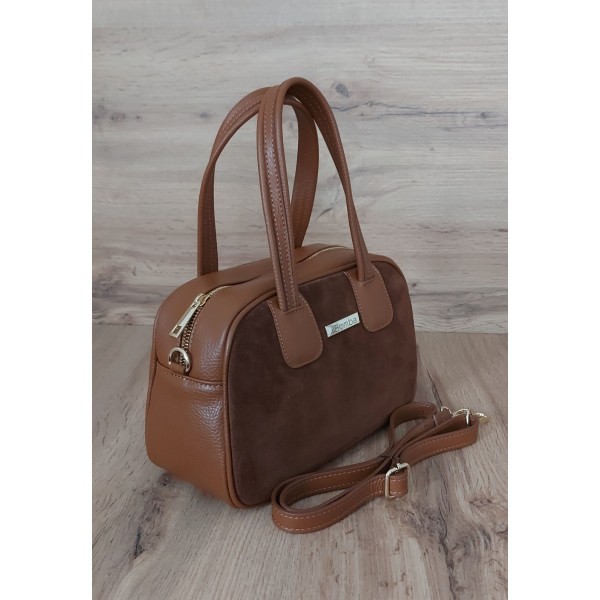 Kuferek La Bomba Vera Pelle Włoska torebka skóra z zamszem Camel SLB44XC