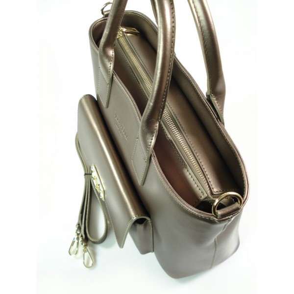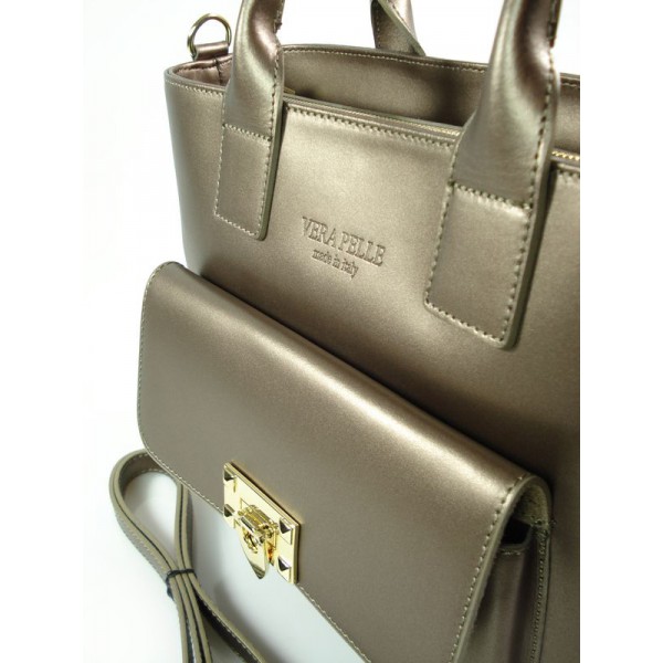Kuferek złote okucia pojemny A4 Włoska torba do ręki Vera Pelle Miedziana K415BRO