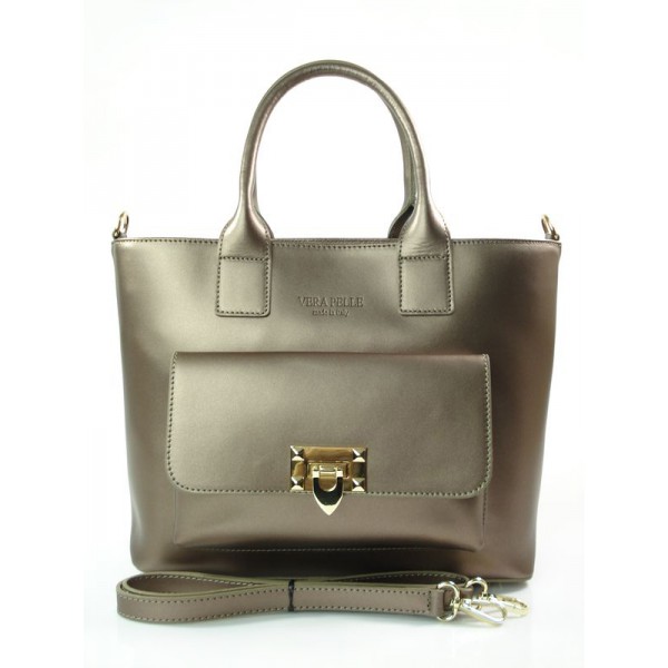 Skórzana Brązowa torebka włoska marki VERA PELLE