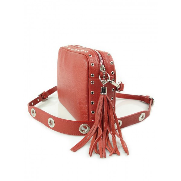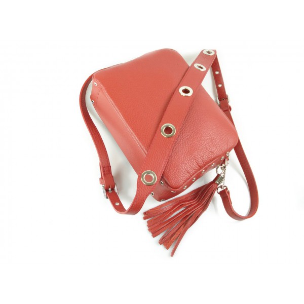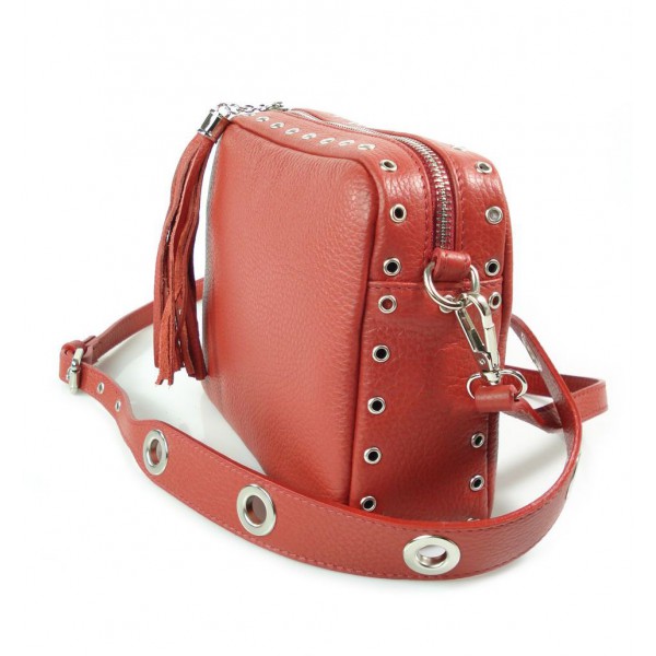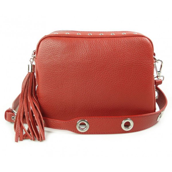 Listonoszka frędzelek, kółka ,dzety srebrne okucia Vera Pelle Czerwona VP1188R