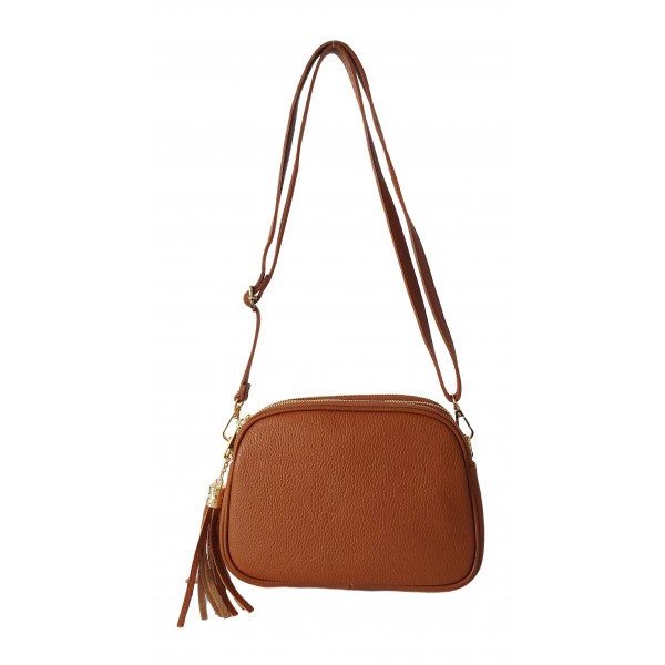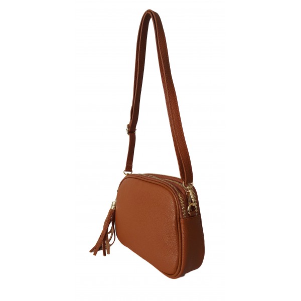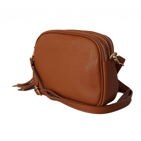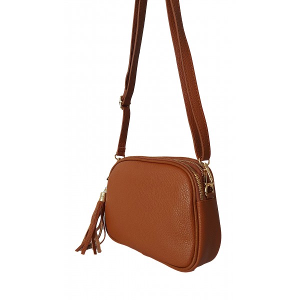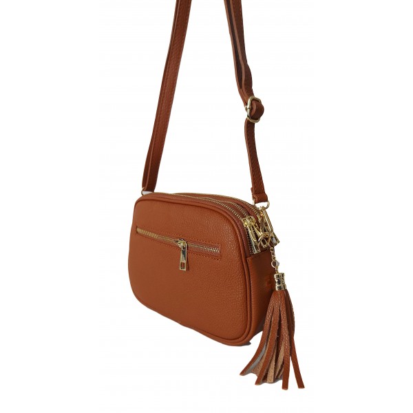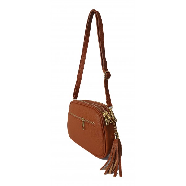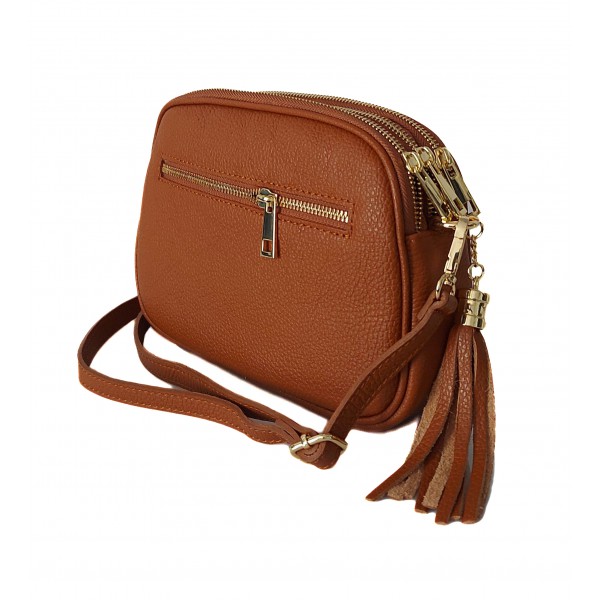Listonoszka trzy komory frędzelek, złote okucia Vera Pelle Camel VP3KZC