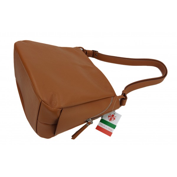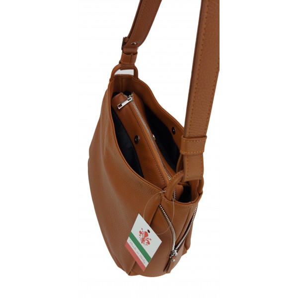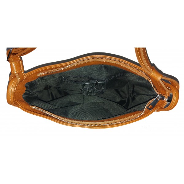 Miękka klasyczna torebka na ramię ,trzy komory ,Włoska skórzana Vera Pelle , Camel LB394C