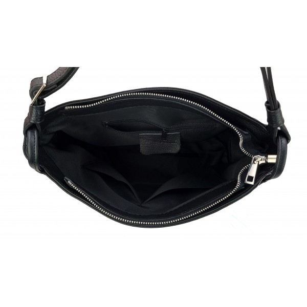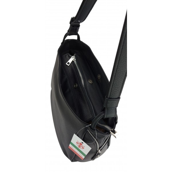Miękka klasyczna torebka na ramię ,trzy komory ,Włoska skórzana Vera Pelle , Czarna LB394N