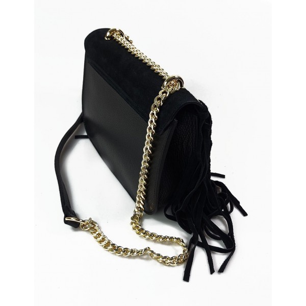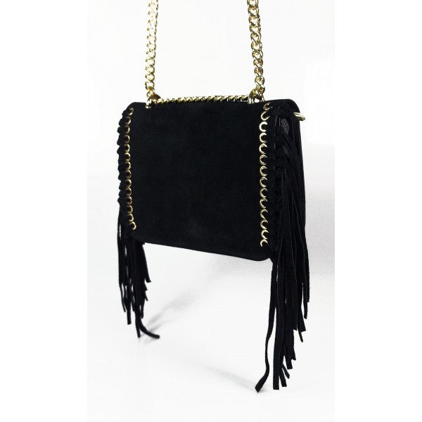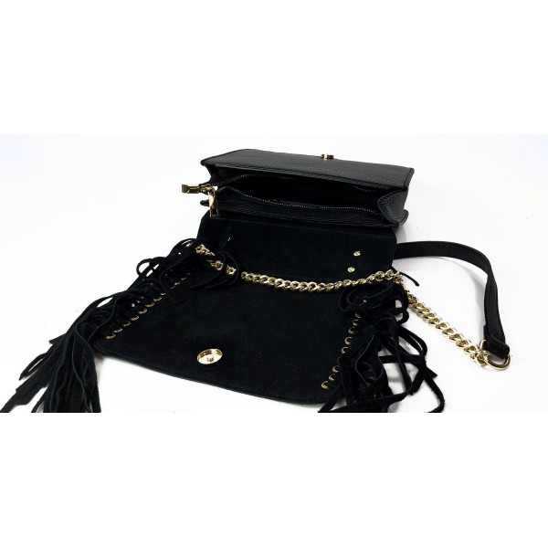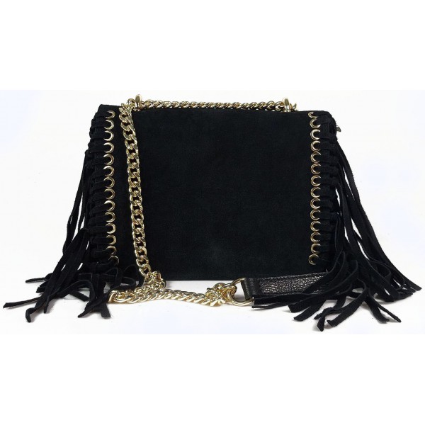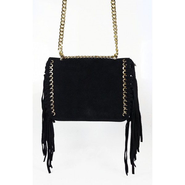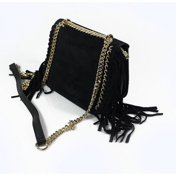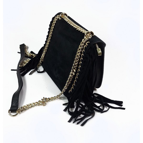 Piękna duża listonoszka A5 frędzle ,złoto ,dzety ,łańcuch skóra zamsz z dollaro czarna VPZ88N