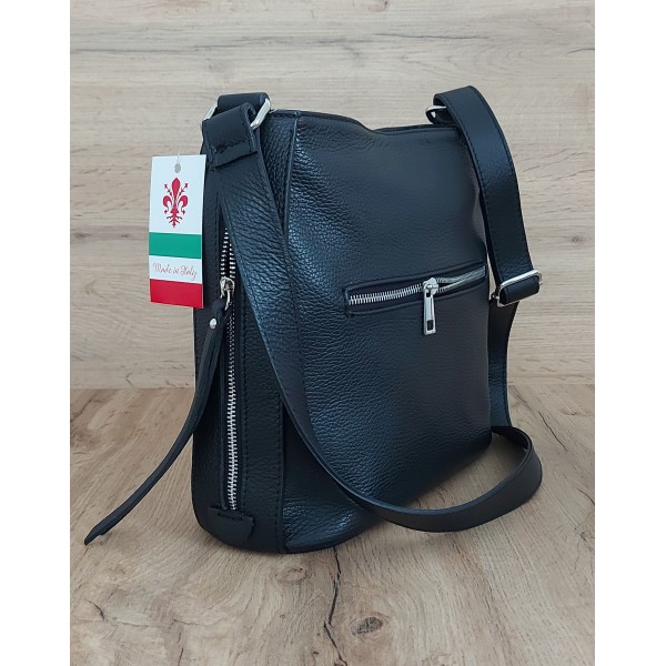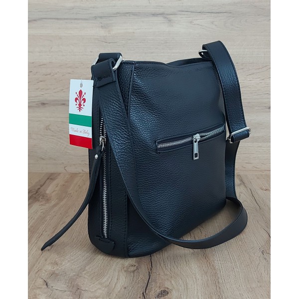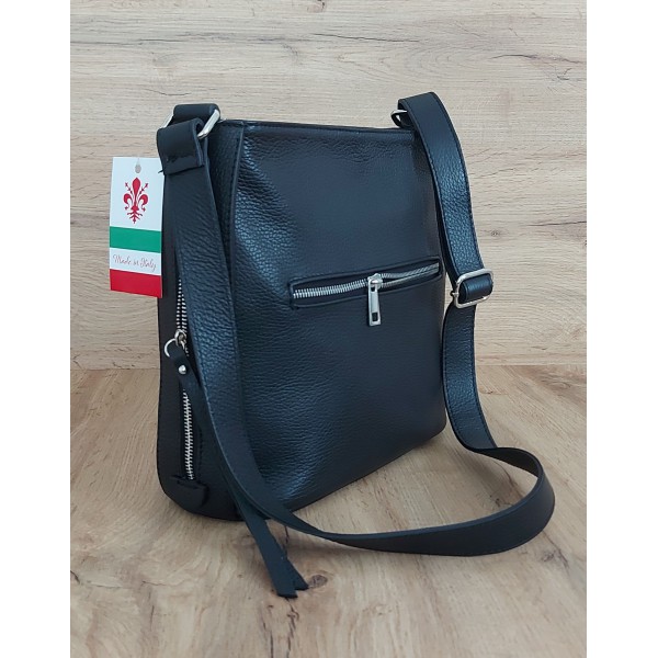 Piękna skórzana Włoska raportówka A5 listonoszka dużo schowków Czarna LB765N