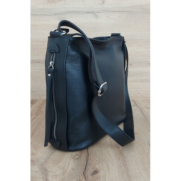 Torebka –  listonoszka zapinana na zamek ,po bokach schowki na zamek ,