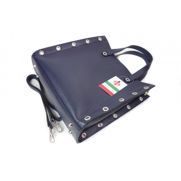 Skórzana Granatowa torebka włoska marki VERA PELLE