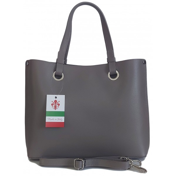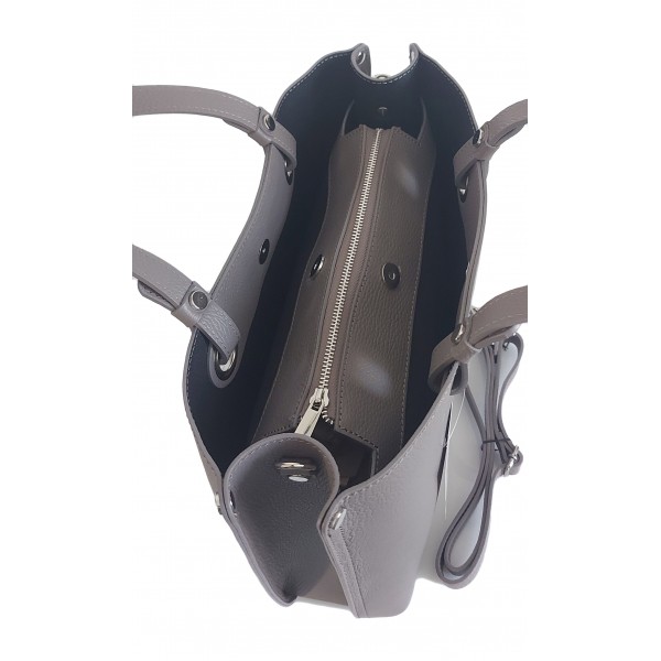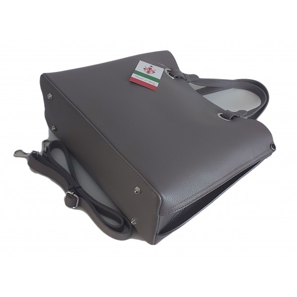 skórzana torba shopper, torba trzykomorowa, szara torebka damska, włoska torebka skórzana, torba shopper Vera Pelle
