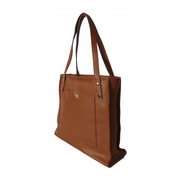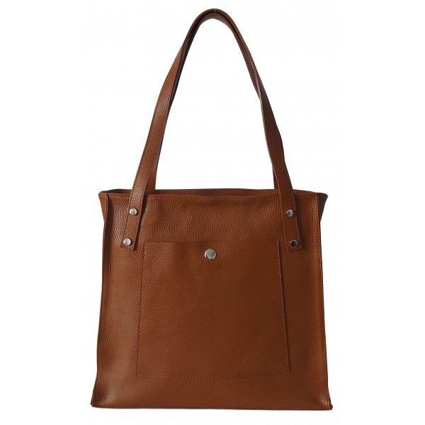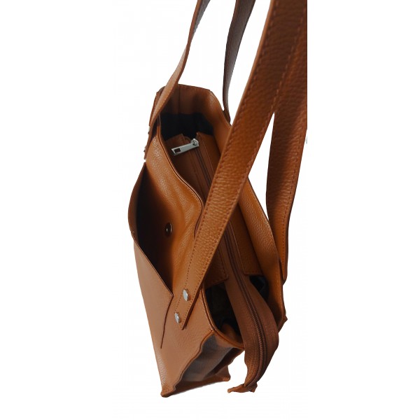 Skórzana Włoska torba na ramię Vera Pelle miękka , pojemna a4 Camel WR365C