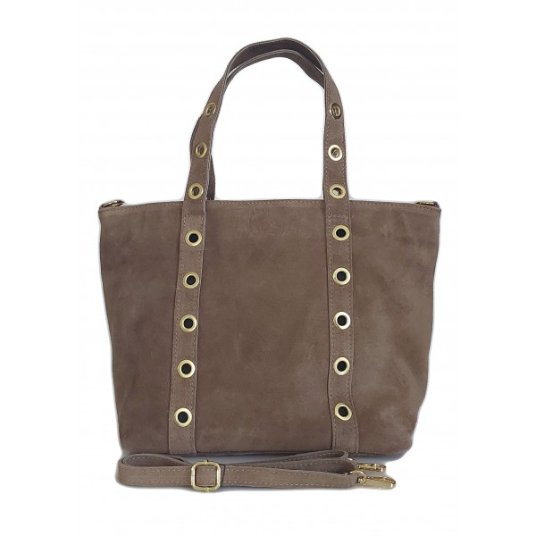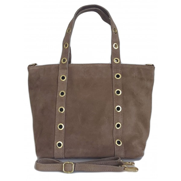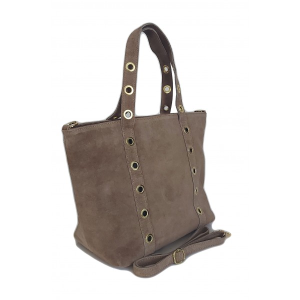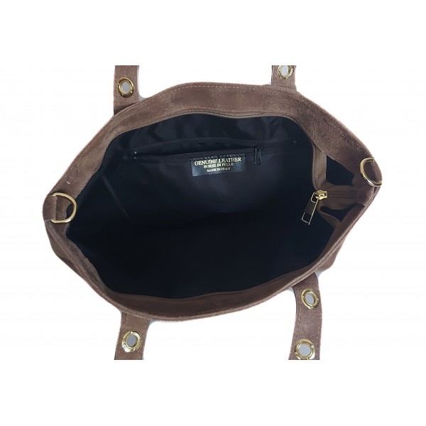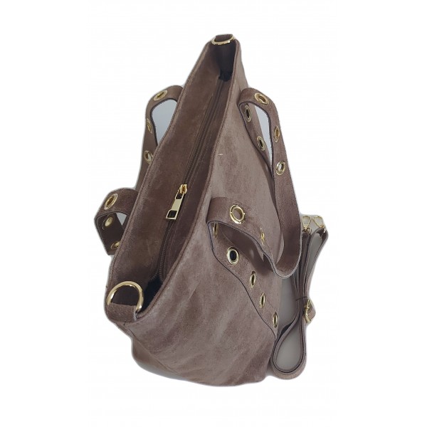 Skórzany Włoski worek ,torba na ramię Vera Pelle miękki zamsz złote dżety-kółka, pojemna A4 Beż WZK25T