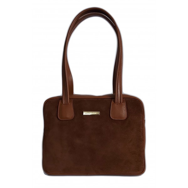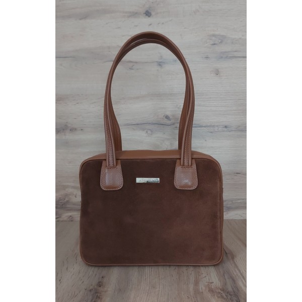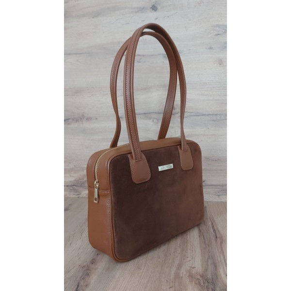 Torebeczka La Bomba Vera Pelle na ramię do ręki, Włoska skóra z zamszem Camel SLB33XC