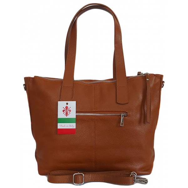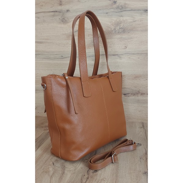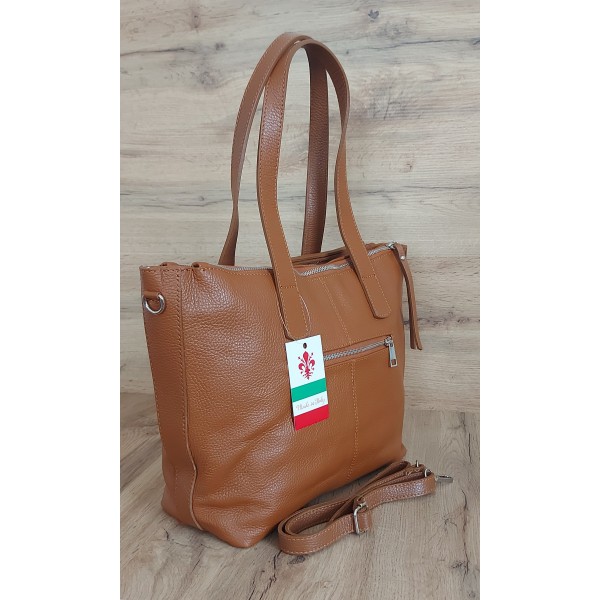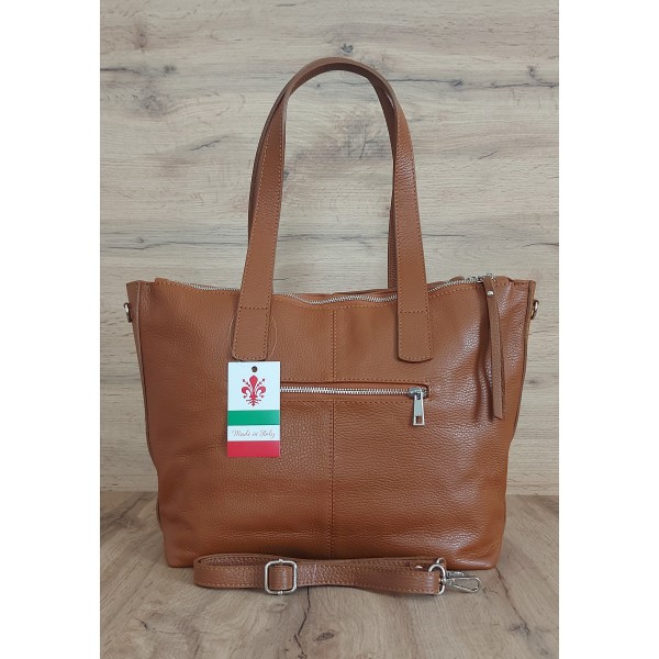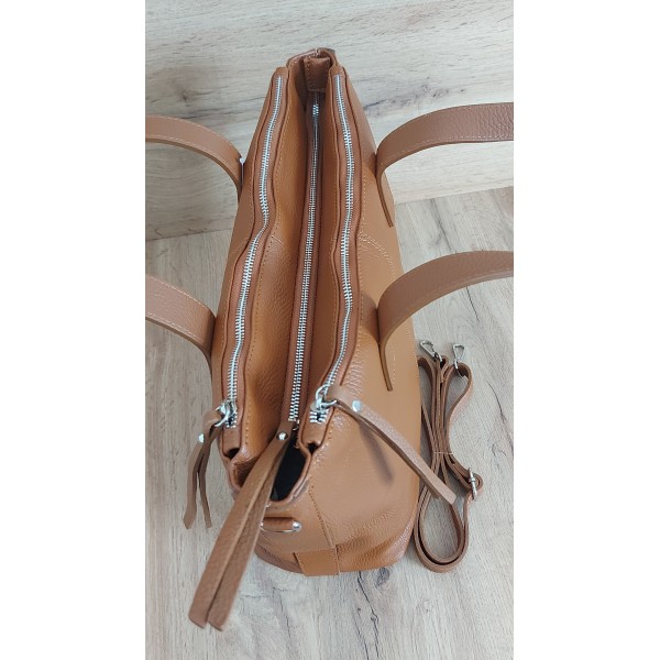 Trzy komory,duża Włoska skórzana torba na ramię mieści A4 ,Vera Pelle Camel WA554C