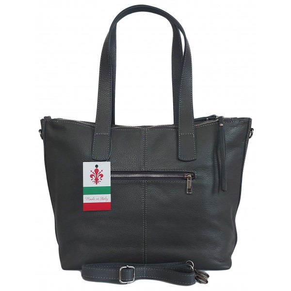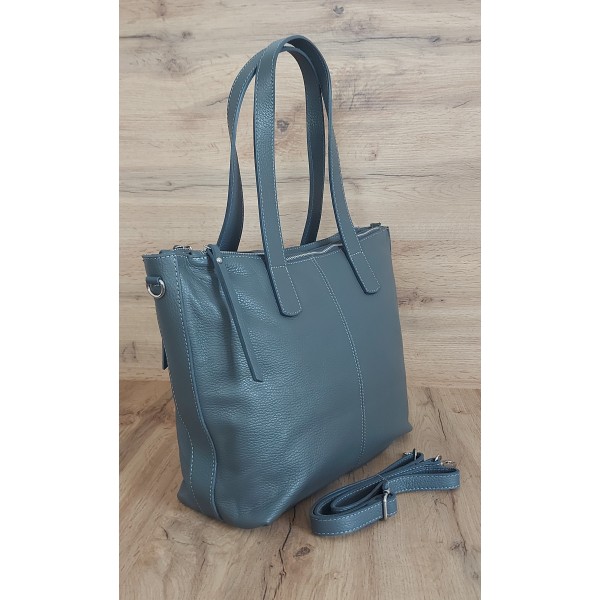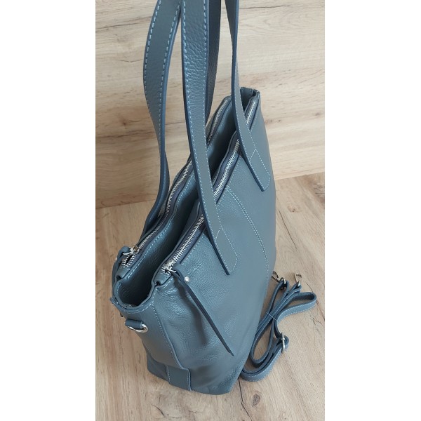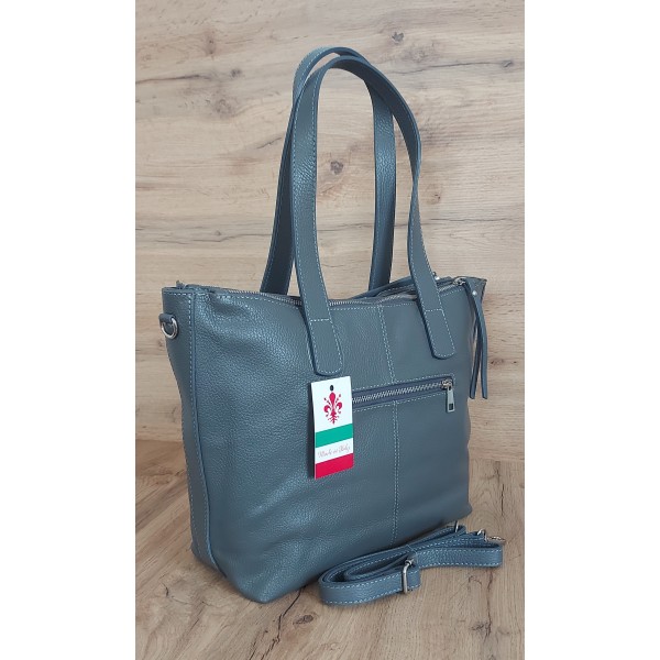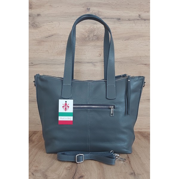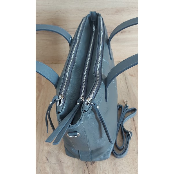 Trzy komory,duża Włoska skórzana torba na ramię mieści A4 ,Vera Pelle Szara WA554G