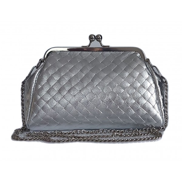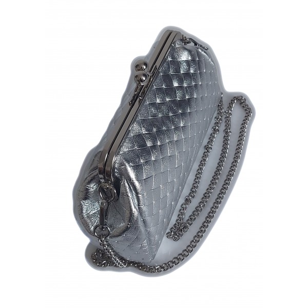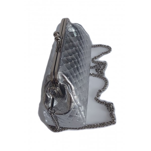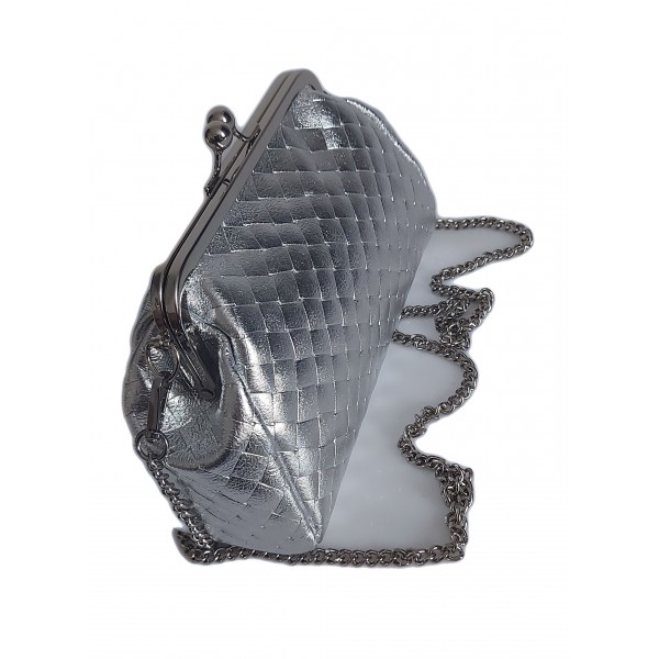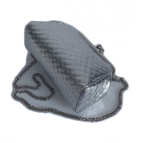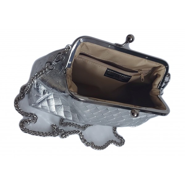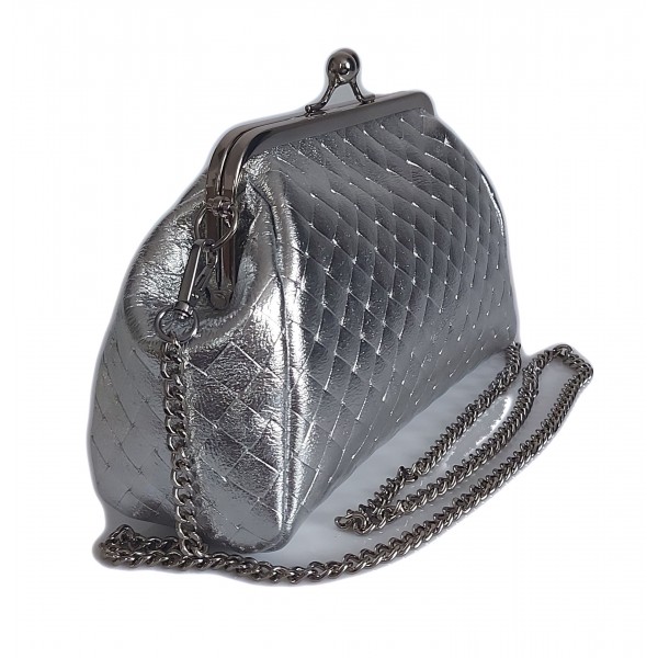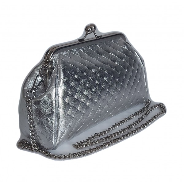 Włoska skórzana kopertówka pikowana srebrne okucia łańcuszek listonoszka biglówka Vera Pelle LKB36ARG