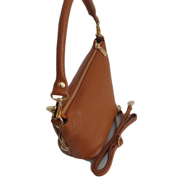 Włoska skórzana listonoszka, woreczek Vera Pelle , złote okucia Camel LPP22C
