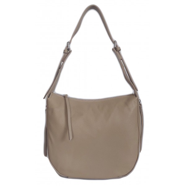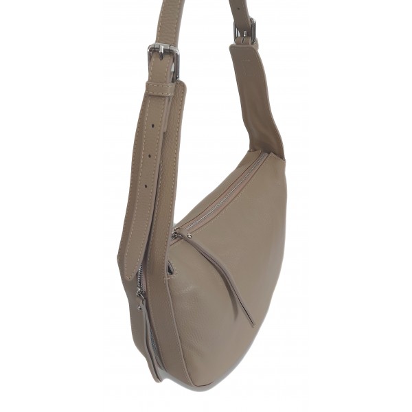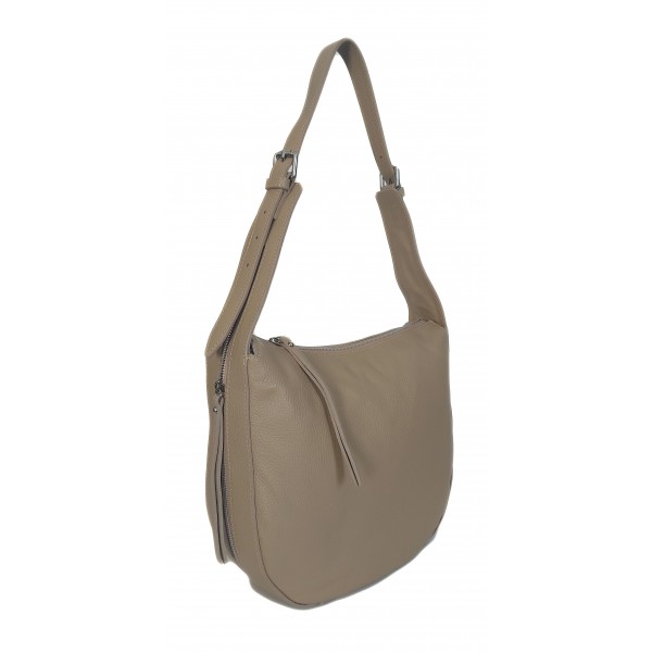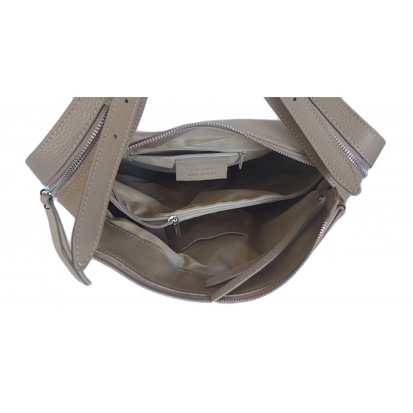 Włoska skórzana torebka na ramię Vera Pelle format A4, Beż LBB55T