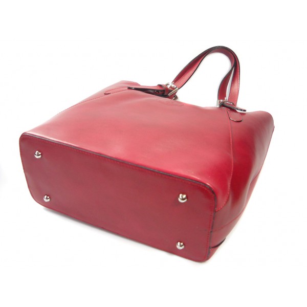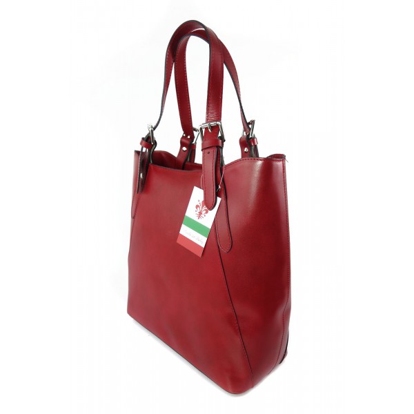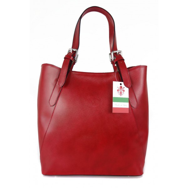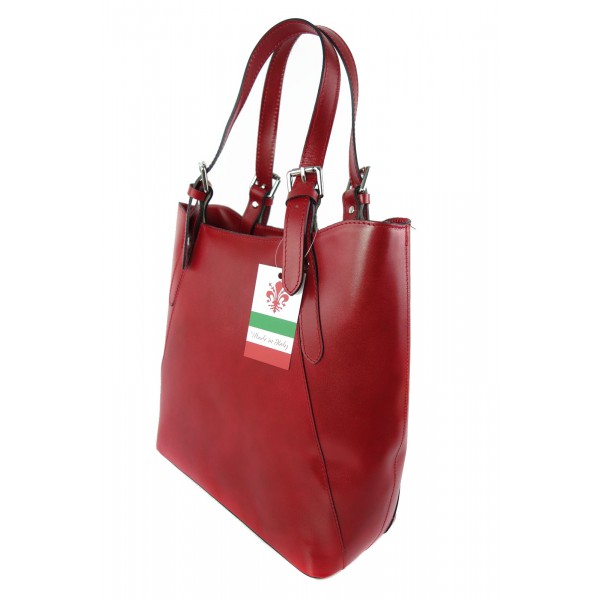 Włoska torebka skórzana na ramię ,Vera Pelle A4,shopper Czerwona V77R