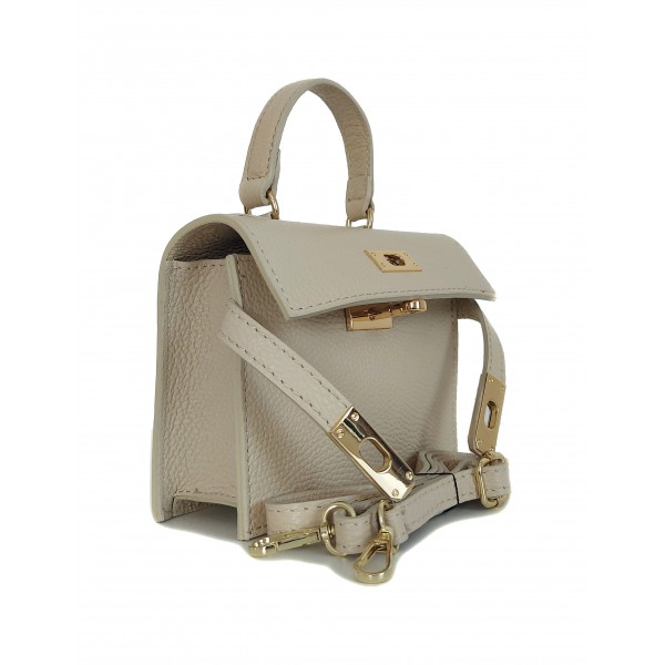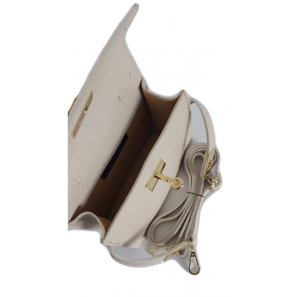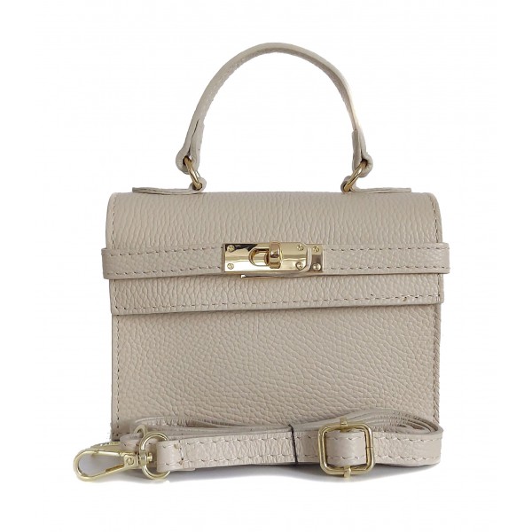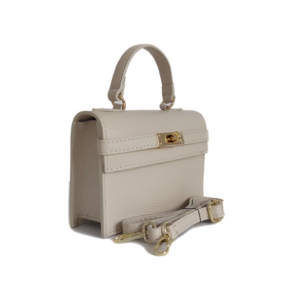 Włoska zgrabna skórzana listonoszka Vera Pelle kuferek,kufereczek Jasny beż VPK321E