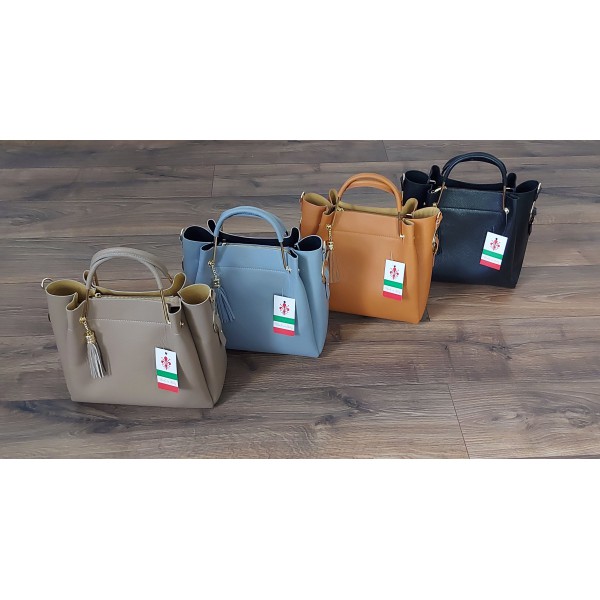 Włoski kuferek Shopperka A4 ,złote okucia + frędzelek Vera Pelle Beżowy KLV33T