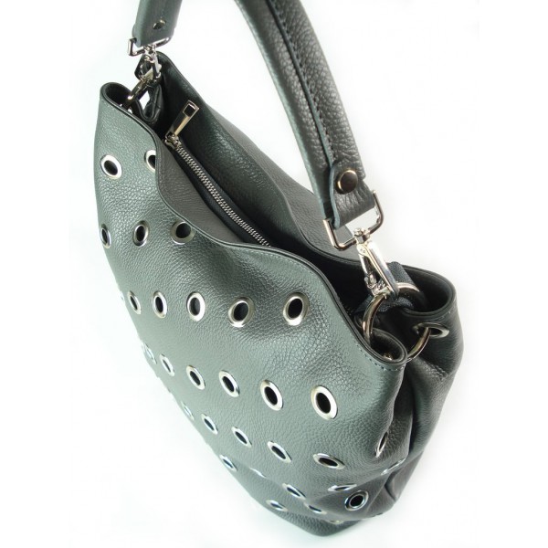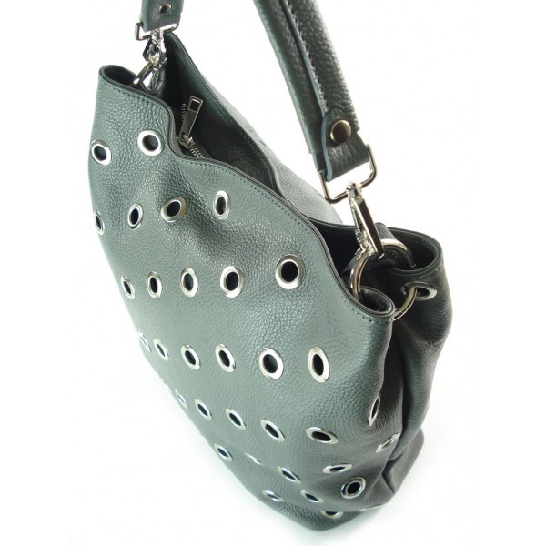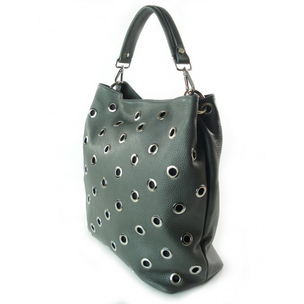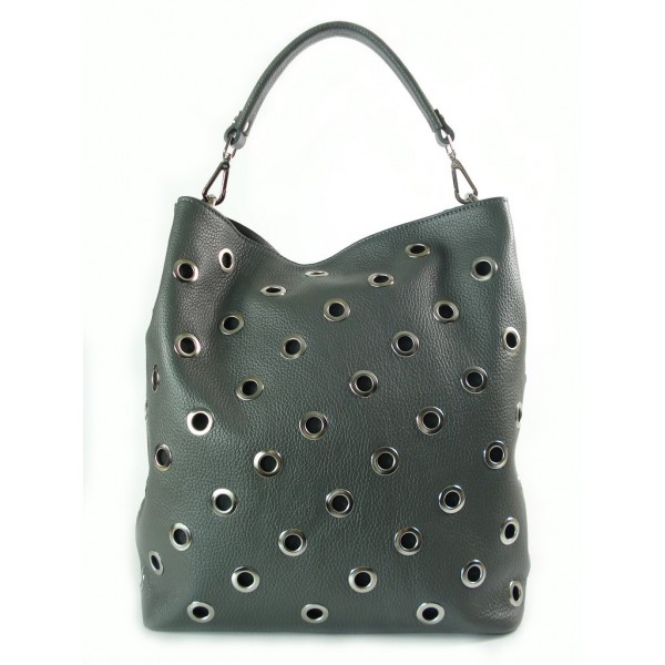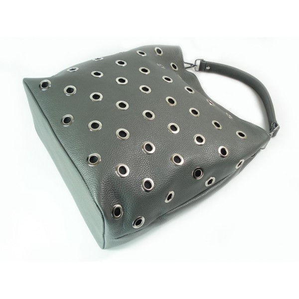 Włoski worek dzety kółka Vera Pelle pojemny Szary WK579G
