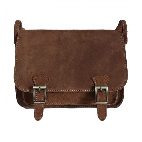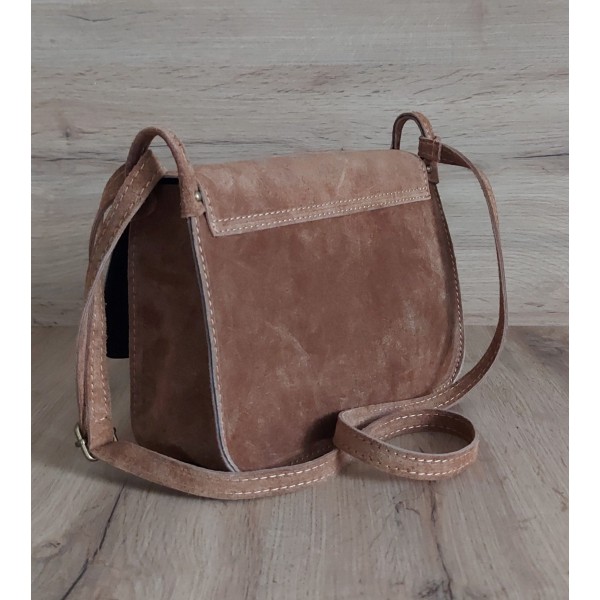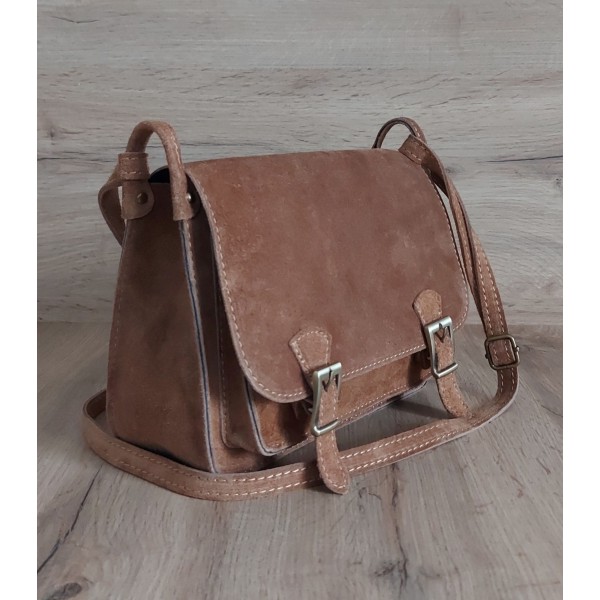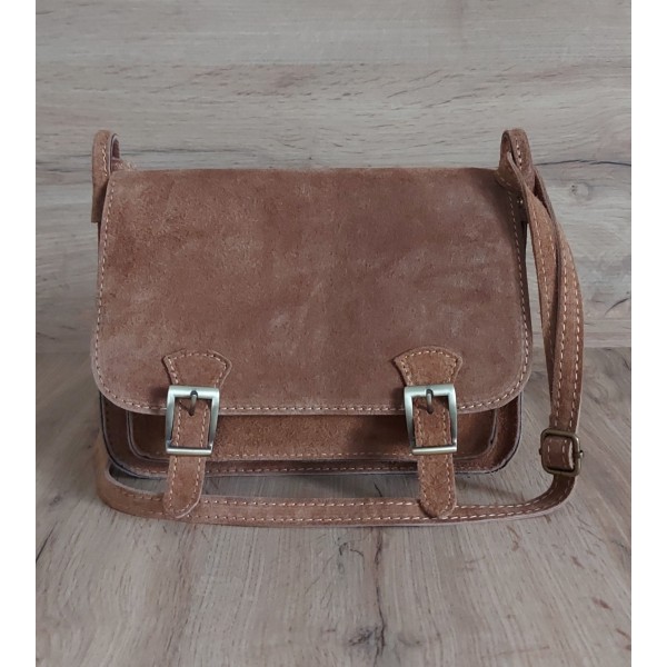 Zamszowa listonoszka ,chlebak Vera Pelle ,pojemna przewieszka A5 Camel VPZ435C