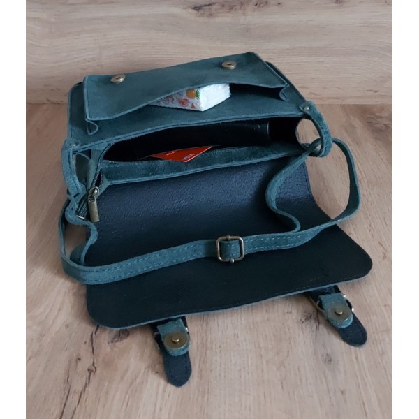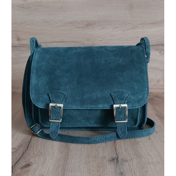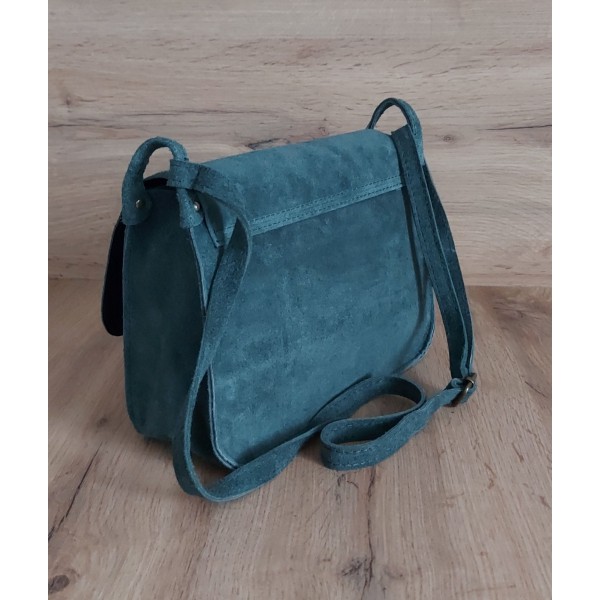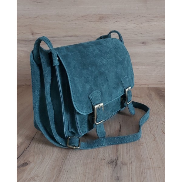 Zamszowa listonoszka ,chlebak Vera Pelle ,pojemna przewieszka A5 Zielona VPZ435V