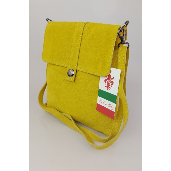 Zamszowa listonoszka Vera Pelle ,pojemna przewieszka format A5 Żółta LK44GIA