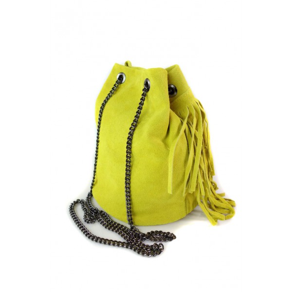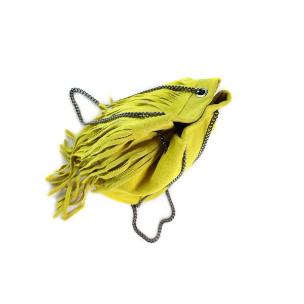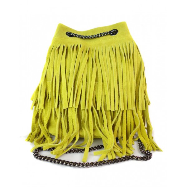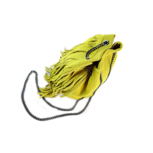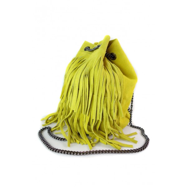 Zamszowa listonoszka ,worek frędzle,włoska skóra Vera Pelle Żółty WL45GL
