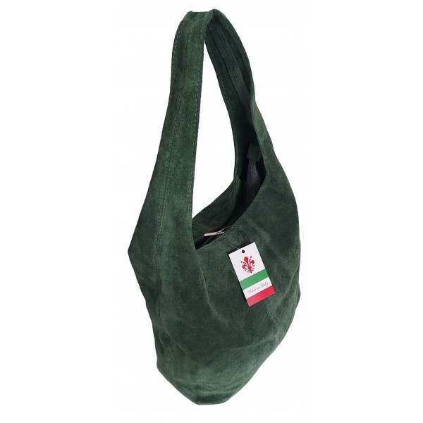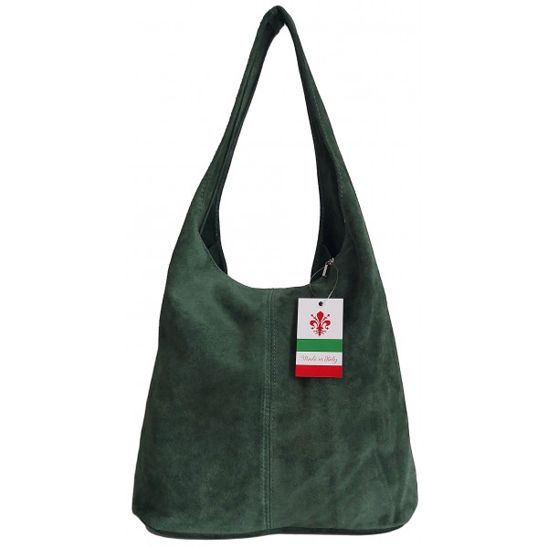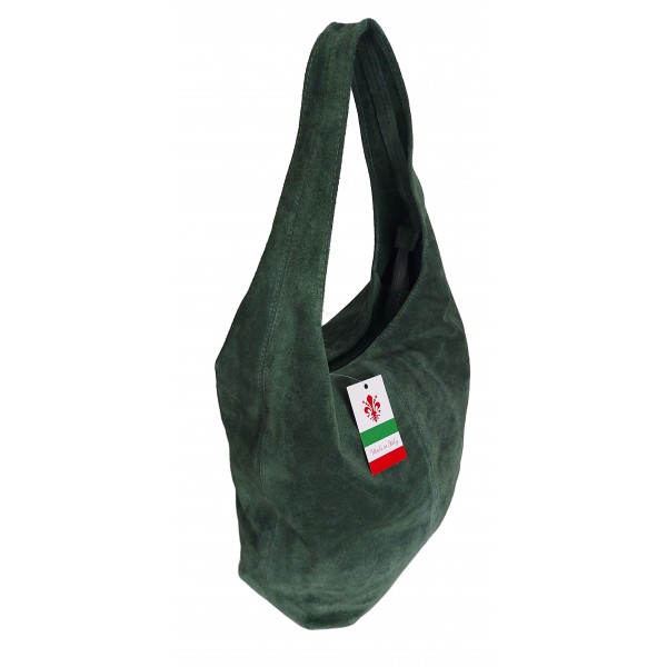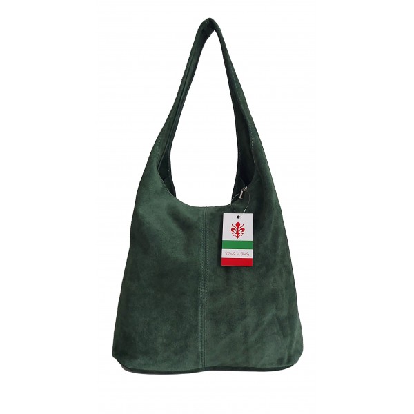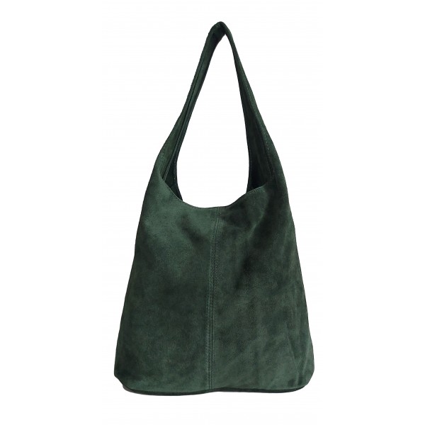 Zamszowy worek , Włoska skórzana torba xl a4 Zielony shopper bag W356VER2
